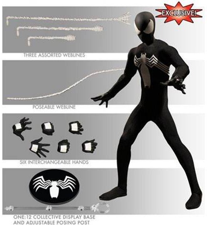 Assembled on an all new One:12 Collective body developed specifically for this figure, Spider-Man features over 30 points of articulation and a meticulously tailored exclusive black outfit with intricate silk screened details!