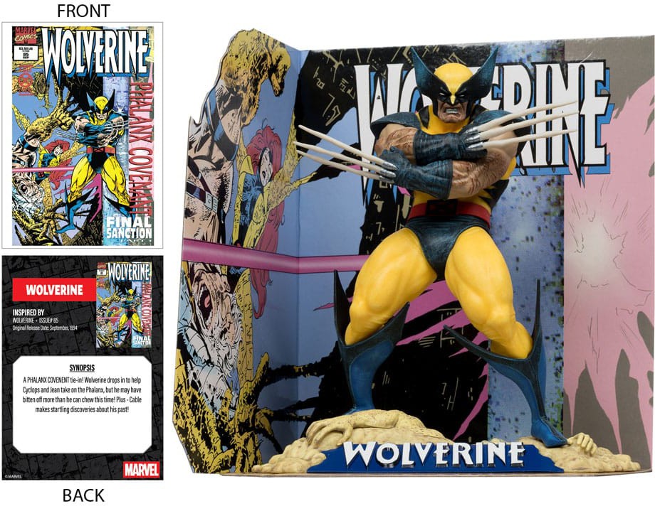 - Wolverine 1:10th scale collectible with environmental base and backdrop scene