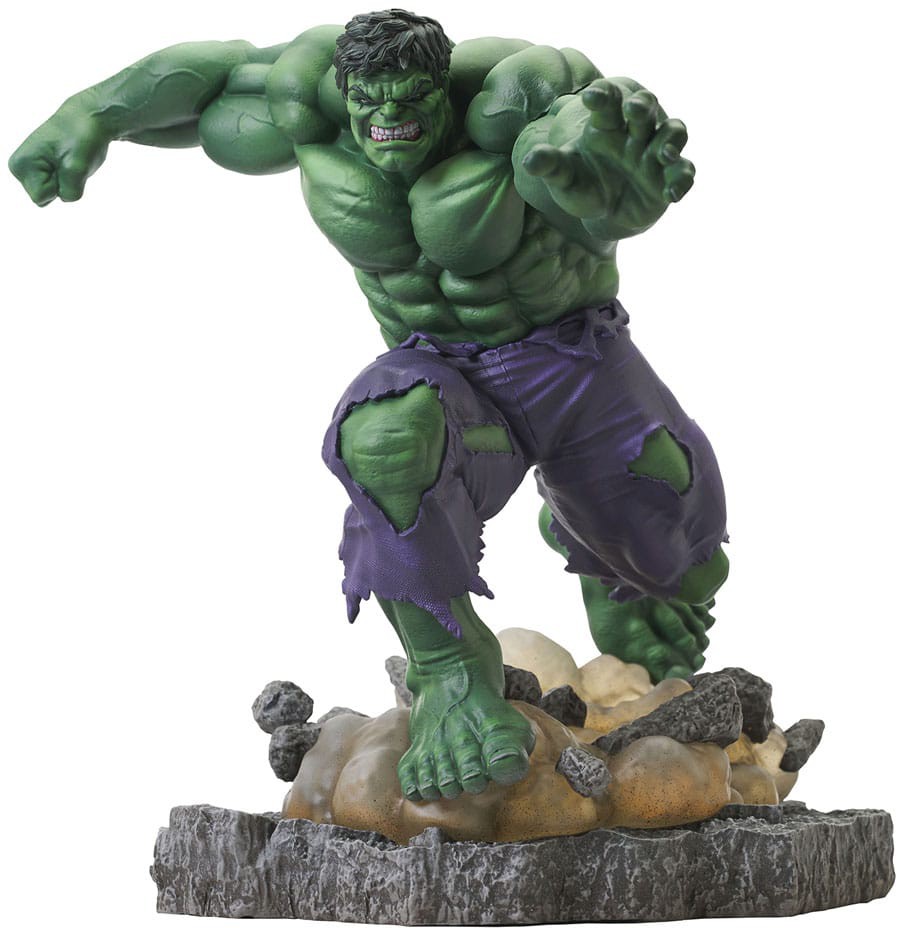 It's a smash from the past! This all-new Marvel Gallery Diorama depicts a decidedly classic Hulk getting ready to take down an opponent! With a 1970s style haircut and charging across a rubble base, this approximately 11.5-inch statue is made of high-quality PVC and features detailed sculpting and paint applications. It comes packaged in a full-color window box. Designed by Caesar, sculpted by Alterton!
