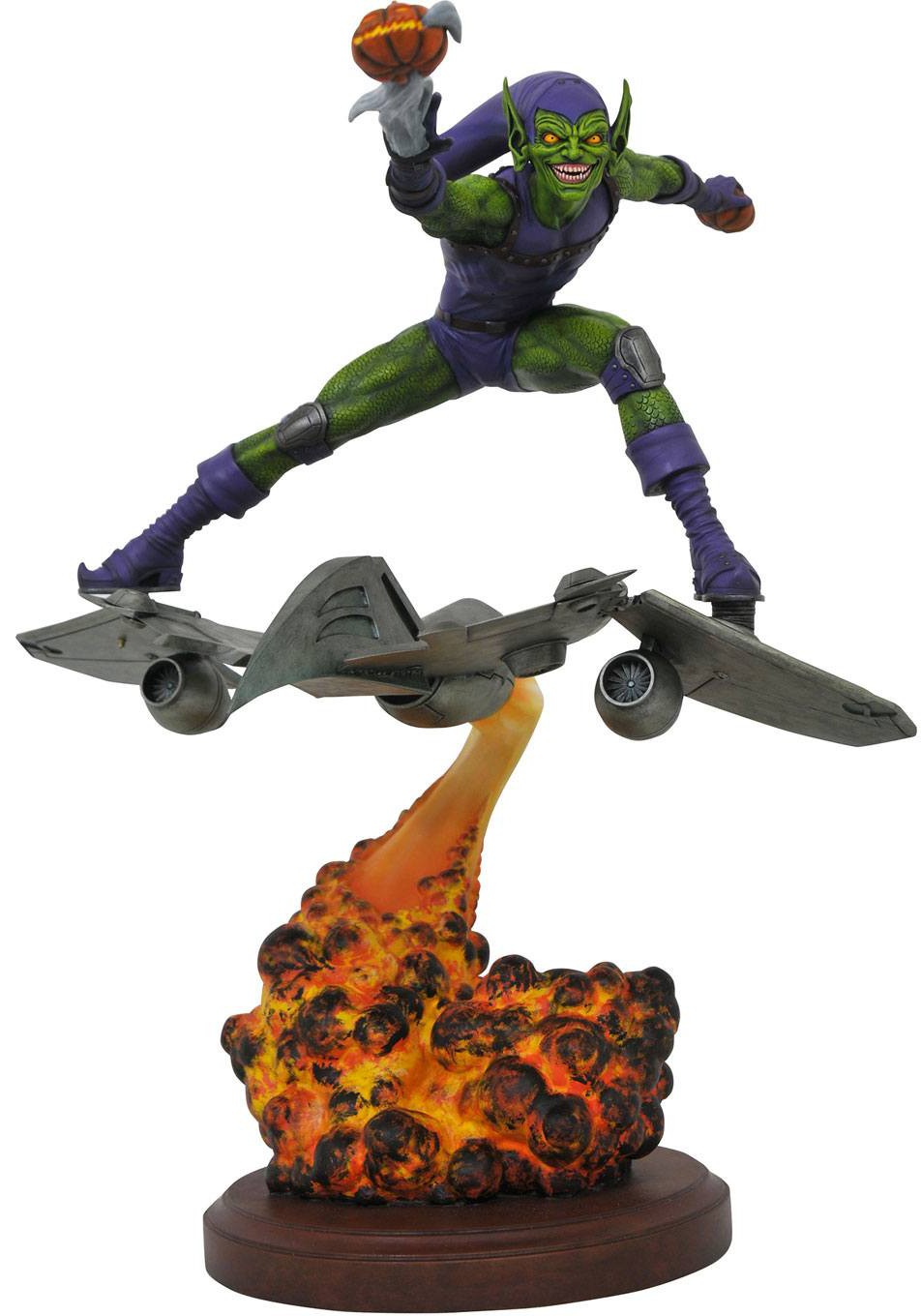 Spider-Man's ultimate foe gets the ultimate statue! The Green Goblin stands on his Goblin Glider and throws a smoking pumpkin bomb in this approximately 1/6 scale sculpture.