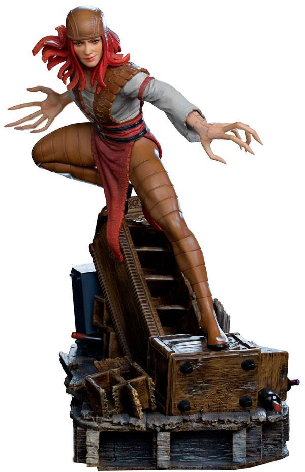 Climbing on a pile of old furniture and destroyed from the demolished Mansion X, the relentless mutant warrior stands for combat. With ferocious eyes and a keen smile on her face, she opens her arms, exposing her hands with big Adamantium claws for fingers, a result of cybernetic enhancements to make her even more deadly and efficient. Adding to the line that compose the diorama of the X-Men against Magneto dominating the giant Sentinel robots and a horde of mutant villains by his side, Iron Studios present their statue "Lady Deathstrike - X-Men - BDS Art Scale 1/10" with the murderous mutant, mercenary and assassin cyborg.