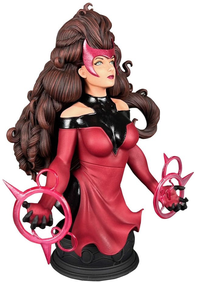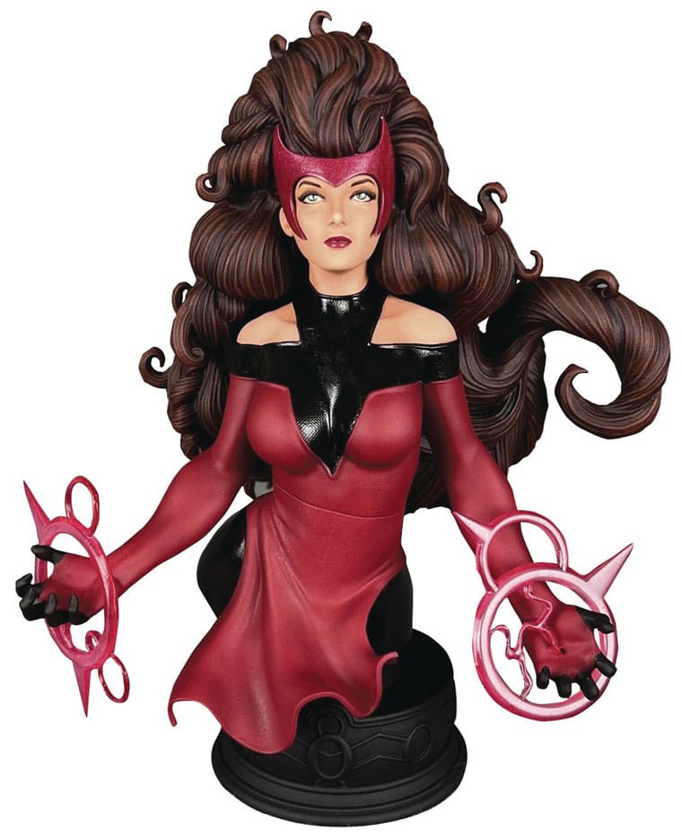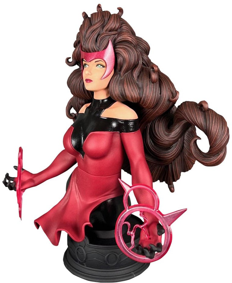 She'll put a spell on you! The Avengers' mighty sorceress joins the Marvel Comics 1/7 scale mini-bust line with this new release! Depicted in the act of casting a spell, Wanda Maximoff stands approximately 5 inches tall and sits atop a themed pedestal. Limited to only 3,000 pieces, she comes packaged in a full-color box with a numbered certificate of authenticity. Designed by Nelson X. Asencio, sculpted by Juan Pitluk!