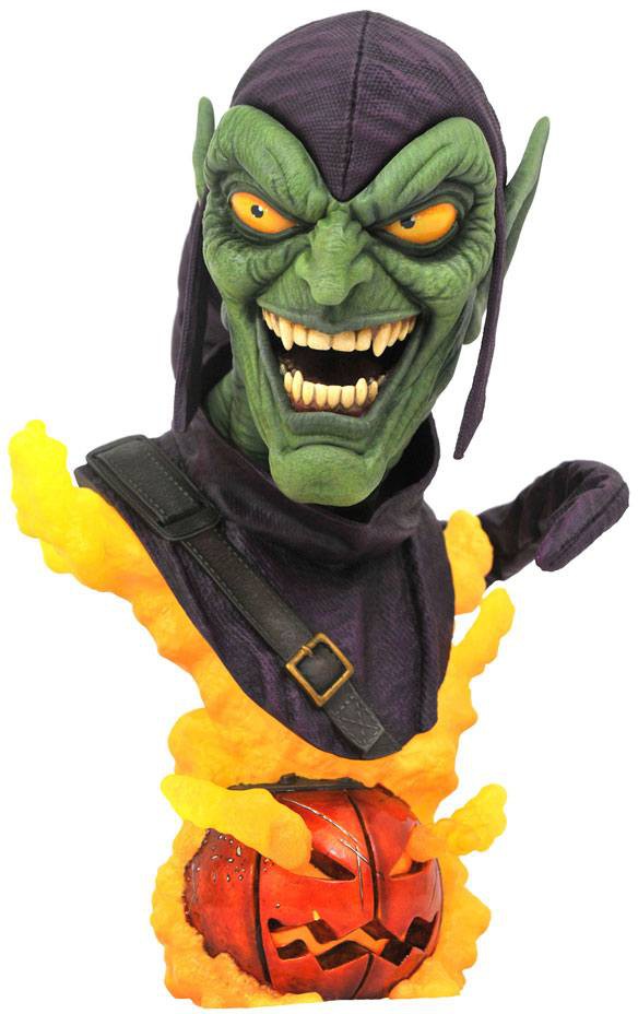 The Green Goblin is now a Legend in 3 Dimensions! The iconic Spider-Man foe gets the 1/2 Scale bust treatment with this all-new sculpture, capturing the grinning villain atop a smoking pumpkin bomb pedestal. Limited to only 1,000 pieces, it comes packaged with a numbered certificate of authenticity in a full-color box. Designed by Joe Allard, sculpted by Alterton!