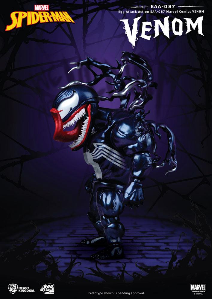 Beast Kingdom Taiwan is excited to recreate 6-inches of menacing power. Venom's dark charms are a perfect 'combination' for the famous Egg Attack Action brand of figurines. With a faithful recreation of Venom's bulging body, oversized mouth and tongue, as well as his strong fangs, replacement expressions and a movable chin, collectors are sure to turn heads anywhere it is placed. Not forgetting that the set also includes two head sculpts, as well as four different sizes of symbiotic special effects goo! One of the most playable and collectible Venom figurines on the market, so make sure this figure is added to your collection this summer!