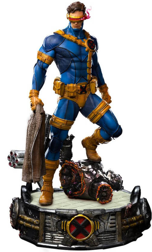 Victorious over the mechanical debris of a robotic opponent, the mutant superhero, field leader, and revolutionary icon of the X-Men appears holding his jacket on his right hand after a tough session in the challenging Danger Room, a hidden facility on the underground of Xavier`s School for Gifted Youngsters, composed of robots and holographic alien technology, capable of creating immersive and interactive artificial environments for training and preparing the students. Wearing a tactical costume made of Kevlar, suitable for facing any threats, the beams of crimson energy still emanate from his visor made with a ruby quartz crystal, the only element capable of containing his devastating powers. Majestic and full of meticulous details; created with extreme attention and strict and precise care to achieve maximum highlight in your collection, Iron Studios proudly present the statue "Cyclops Unleashed Deluxe - Marvel Comics - Art Scale 1/10" featuring the first X-Men in a new standard of excellence on the 1/10 scale, over an extremely detailed base with technological elements that refer to a diorama set of the training center from his headquarters.