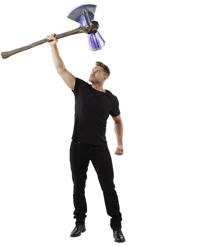 Imagine defeating Thanos with this Thor electronic roleplay axe! Activate exciting thunder sound FX with the push of a button. Marvel's Avengers: Endgame Marvel’s Stormbreaker Electronic Axe, fans and collectors can imagine joining the battle to save the universe!