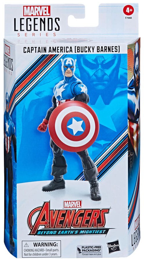 Bring the excitement and wonder of the Marvel Universe to your collection with Captain America (Bucky Barnes) and other action figures from the Hasbro Marvel Legends Series! (Additional products each sold separately. Subject to availability.) In the wake of Steve Roger's death, his former partner Bucky Barnes must reconcile his own past as a KGB assassin and don the mantle and shield of Captain America. This collectible 6-inch -scale Marvel Legends Avengers 60th Anniversary action figure is detailed to look like Bucky Barnes as Captain America from Marvel's Captain America comics, featuring premium detail and multiple points of articulation. Figure comes with 5 accessories, including alternate hands Captain America shield.