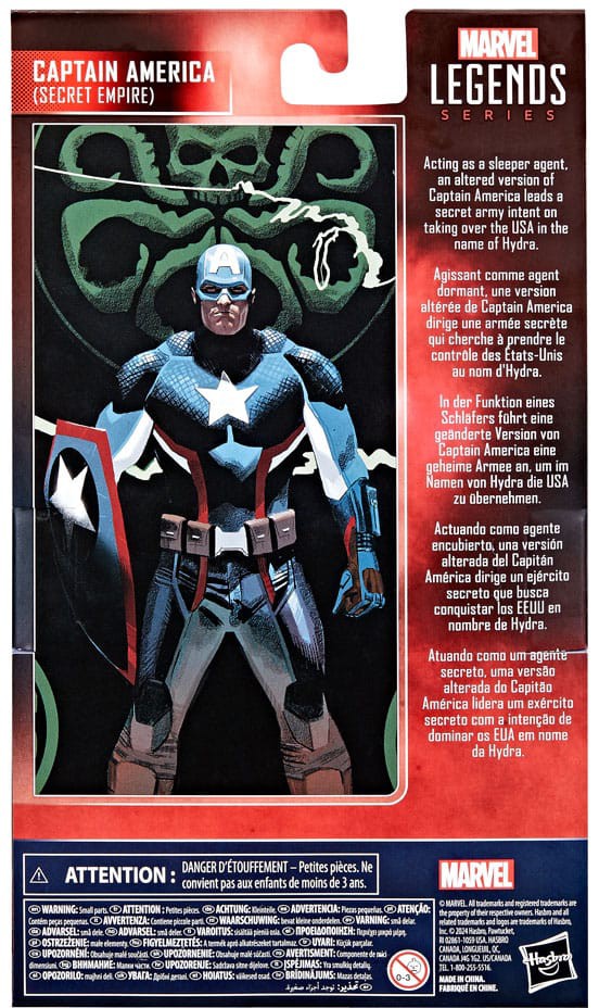 Bring the excitement and wonder of the Marvel Universe to your collection with Hasbro Marvel Legends Captain America figure! This collectible 6-inch scale Marvel figure is detailed to look like the character from Marvel's Captain America: Secret Empire comics. Captain America Steve Rogers action figure is fully articulated with poseable head, arms, and legs. Marvel action figure set comes with 3 accessories, including distinct Secret Empire comics-inspired shield. Hasbro Marvel action figures' 6 inch scale make them great for posing and displaying in fans' collections. Reimagine Captain America comics-inspired scenes on your shelf with Marvel Legends action figures.