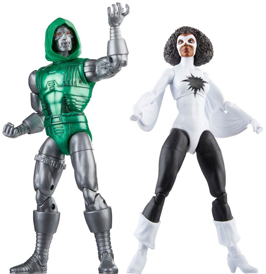 Dette samlerobjekt Marvel Legends Avengers 60th Anniversary actionfigur-sæt er detaljeret, så det ligner Captain Marvel og Doctor Doom fra Marvel Super Heroes Secret Wars-tegneserierne, med førsteklasses detaljer og flere bevægelige punkter. Figurerne leveres med 6 tilbehør, herunder alternative hænder til hver figur, alternativt afmaskeret Doctor Doom-hoved og Doctor Doom-maske.