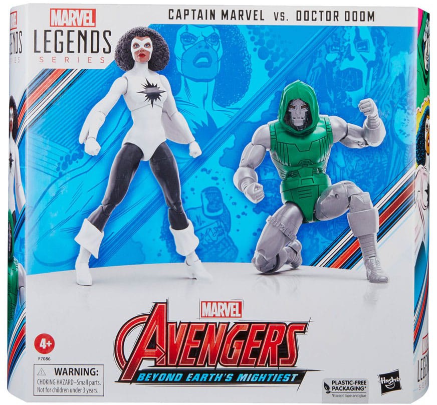 Bring the excitement and wonder of the Marvel Universe to your collection with Captain Marvel, Doctor Doom, and other action figures from the Hasbro Marvel Legends Series! (Additional products each sold separately. Subject to availability.) Whisked to another planet by the mysterious Beyonder, Captain Marvel (Monica Rambeau) joins forces with fellow heroes in Secret Wars to stop Doctor Doom from becoming an all-powerful being. This collectible 6-inch -scale Marvel Legends Avengers 60th Anniversary action figure set is detailed to look like Captain Marvel and Doctor Doom characters from Marvel Super Heroes Secret Wars comics, featuring premium detail and multiple points of articulation. Figures come with 6 accessories, including alternate hands for each figure, alternate unmasked Doctor Doom head, and Doctor Doom mask.
