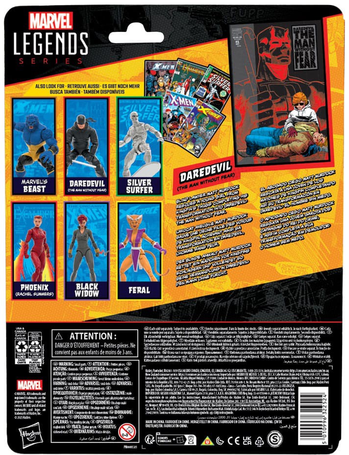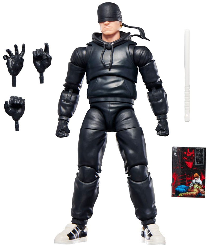 Bring the excitement and wonder of the Marvel Universe to your collection with the Hasbro Marvel Legends Daredevil figure! Detailed to look like the character's appearance at the climax of Marvel's Daredevil: The Man Without Fear, this collectible 6-inch scale Marvel figure is fully articulated with premium design and poseable head, arms, and legs. This Marvel action figure set comes with 5 accessories, including 3 alternate hands, iconic billy club, as well as a 6-inch scale plastic comic book accessory featuring the cover of The Man Without Fear. Hasbro Marvel action figures' 6-inch scale make them great for posing and displaying in fans' collections. Reimagine comics-inspired scenes on your shelf with Marvel Legends action figures and Marvel collectibles.