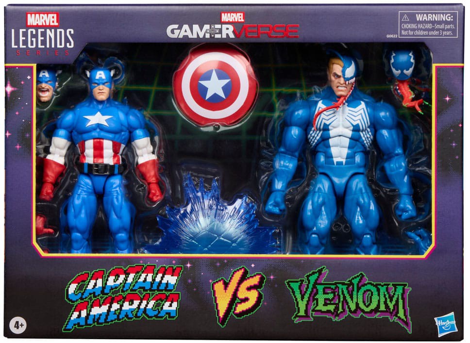 Bring the excitement and wonder of the Marvel Universe to your collection with Hasbro Marvel Legends Captain America and Venom action figures! These collectible 6-inch scale Marvel figures are inspired by the characters' appearance in classic Marvel video games. Figures are fully articulated with premium design and poseable heads, arms, and legs. Marvel action figure set comes with 8 accessories, including alternate head, alternate hands, and shield power FX piece. Hasbro Marvel action figures' 6 inch scale make them great for displaying in fans' collections. Reimagine gaming-inspired scenes on your shelf with Marvel collectibles.