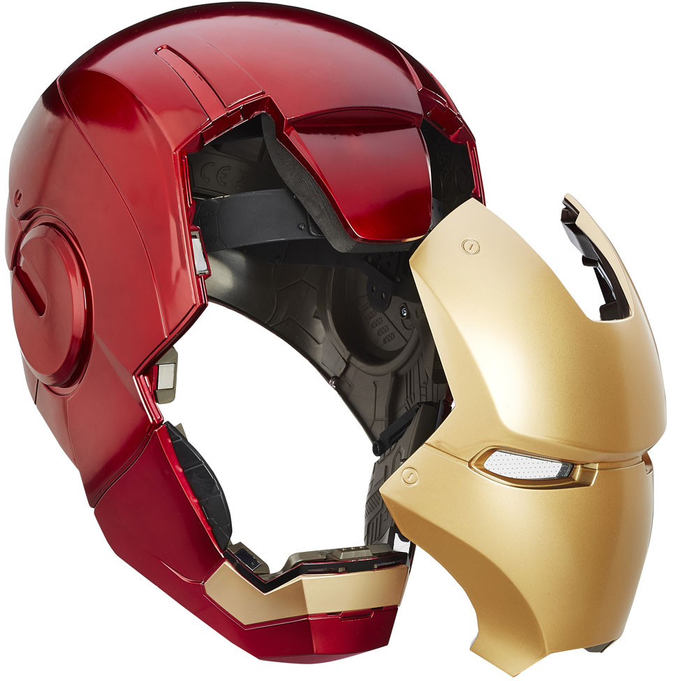 Highly detailed and 1:1 full-scale premium role-play items come to the Marvel Legends line! In addition to 2 glowing LED eyes, the Iron Man Helmet has a magnetized faceplate that can be completely detached from the helmet and then connected to the top. Attaching and detaching the faceplate triggers light up eyes and dramatic sound effects.