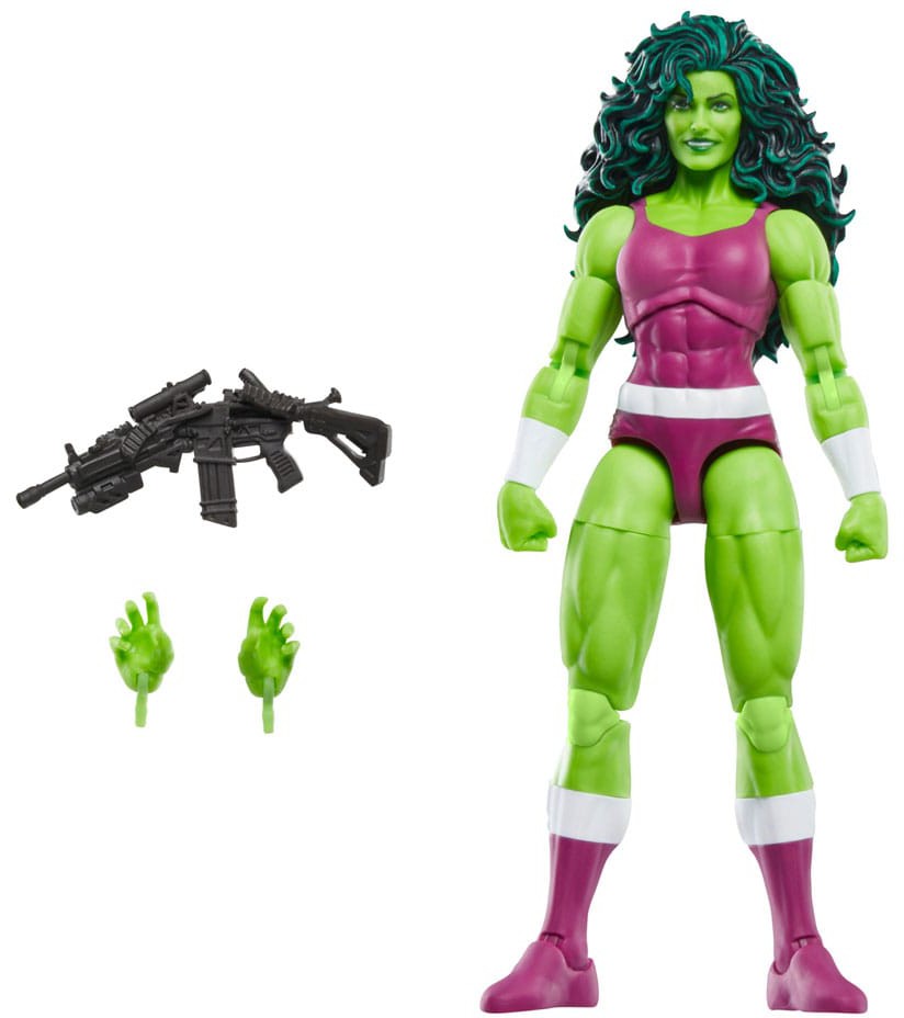 Bring the excitement and wonder of the Marvel Universe to your collection with Hasbro Marvel Legends She-Hulk action figure! This collectible figure is detailed to look like the character from Marvel's Iron Man and She-Hulk comics. 6-inch scale Marvel figures are fully articulated with poseable head, arms, and legs. Marvel action figure set comes with 2 alternate hand accessories. Hasbro Marvel action figures' 6 inch scale make them great for posing and displaying in fans' collections. Reimagine Marvel comics-inspired scenes on your shelf with Marvel Legends action figures.