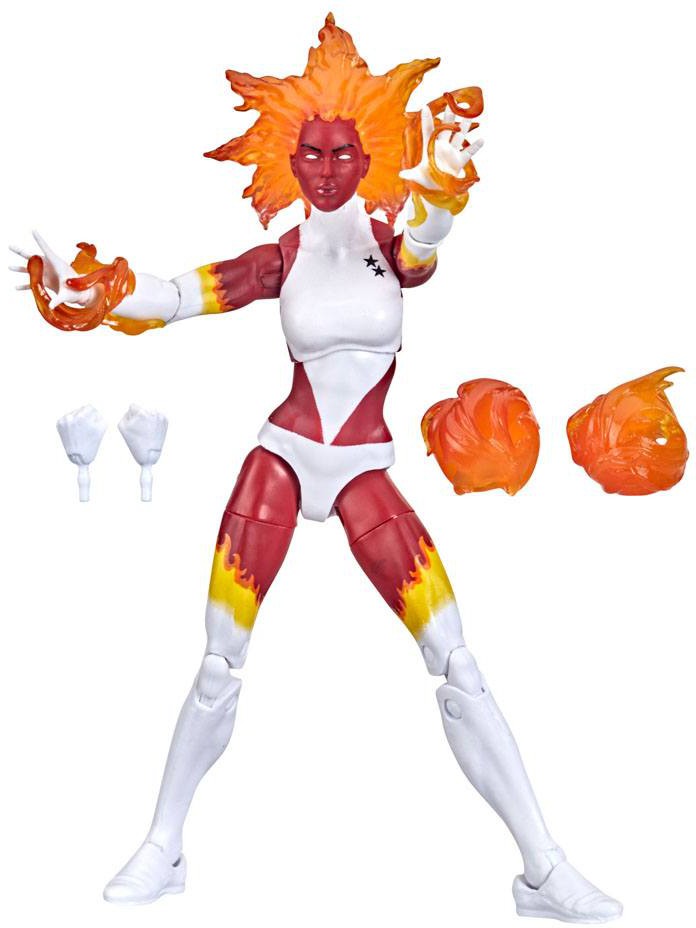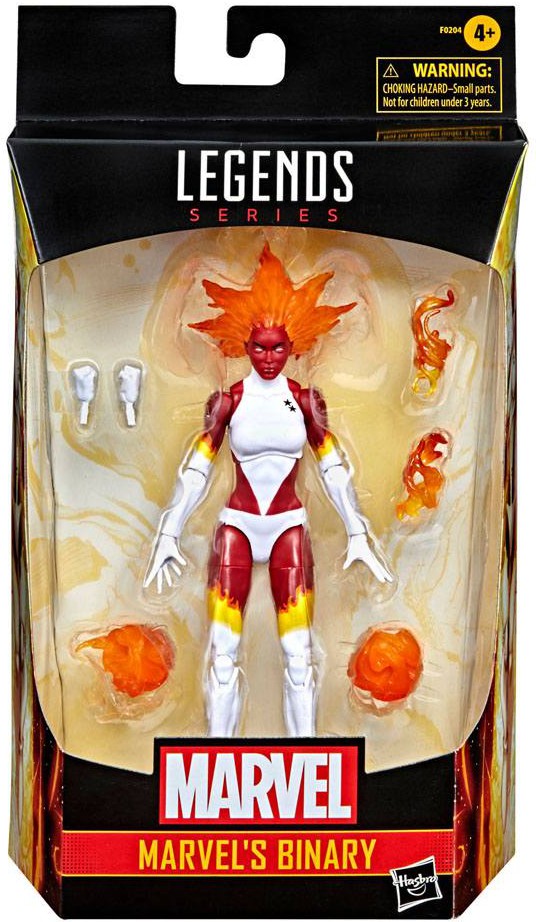 With high poseability and Marvel comic-inspired detail, the Marvel Legends Collection 6-inch-scale Marvel's Binary figure can be displayed in action figure and vehicle collections.