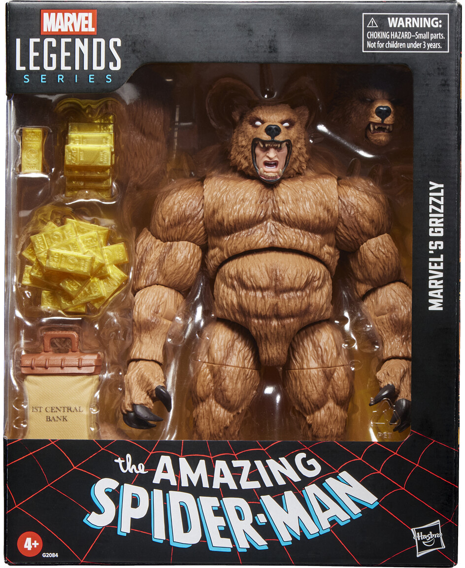 Maxwell Markham søger hævn over J. Jonah Jameson, der ødelagde hans brydekarriere, og ifører sig et bjørnetema kraftforstærkende exoskelet som superskurken Grizzly. Figuren leveres med syv tilbehør, herunder et alternativt bjørnehoved med bevægelig kæbe, guldbarrer og udskiftelige kløer.