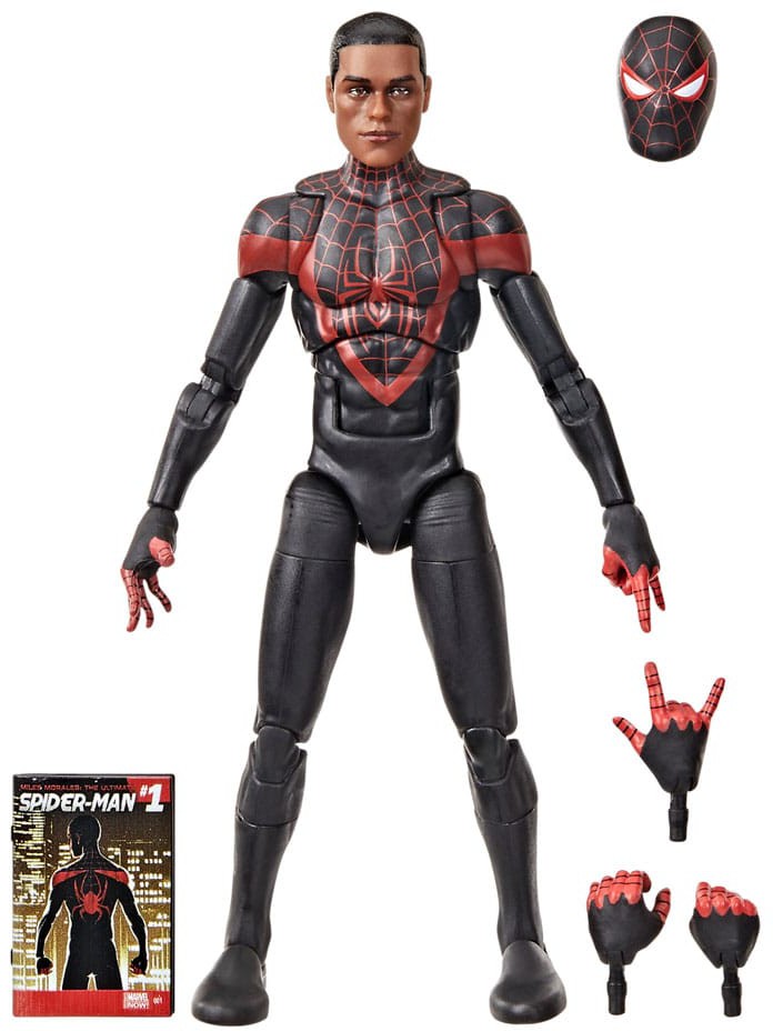 Bring the excitement and wonder of the Marvel Universe to your collection with Hasbro Marvel Legends Ultimate Miles Morales figure! Detailed to look like the character’s appearance in Marvel's Miles Morales: Ultimate Spider-Man #1 (2014), this collectible 6-inch scale Marvel figure is fully articulated with premium design and poseable head, arms, and legs. This Marvel action figure set comes with 5 accessories, including 3 alternate hands, and alternate masked head, as well as a 6-inch scale plastic comic book accessory featuring the cover of Miles Morales: Ultimate Spider-Man #1 (2014). Hasbro Marvel action figures' 6 inch scale make them great for posing and displaying in fans' collections. Reimagine comics-inspired scenes on your shelf with Marvel Legends action figures and Marvel collectibles.