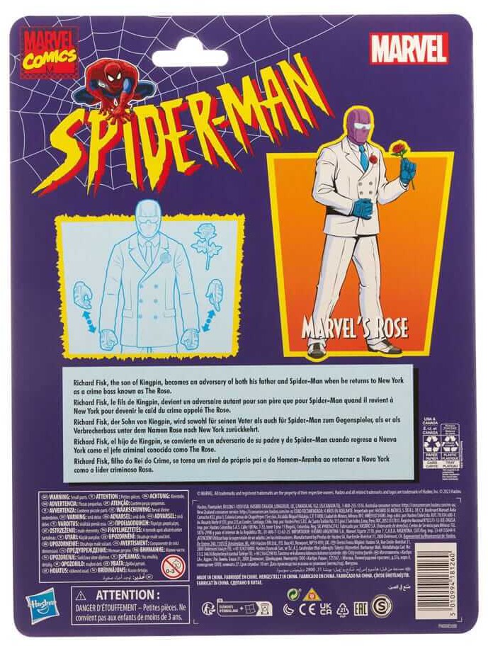 Denne 15 cm høje Marvel Legends-figur i 6 tommer skala er designet til at ligne Marvel's Rose, alias Richard Fisk, fra Marvels Amazing Spider-Man-serie.