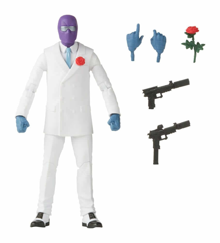 Figuren leveres med 5 tilbehør, herunder alternative hænder, våben og en rose.