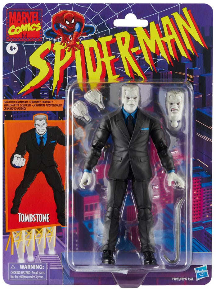Bring the excitement and wonder of the Marvel Universe to your collection with Hasbro Marvel Legends Tombstone figure! This collectible figure is detailed to look like the character from Marvel's Spider-Man comics. 6-inch scale Marvel figures are fully articulated with poseable head, arms, and legs. Marvel action figure set comes with 4 accessories, including alternate hands, alternate head, and crowbar weapon accessory. Hasbro Marvel action figures' 6 inch scale make them great for posing and displaying in fans' collections. Reimagine Spider-Man comics-inspired scenes on your shelf with Marvel Legends action figures.