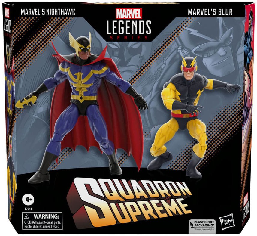Bring the excitement and wonder of the Marvel Universe to your collection with Hasbro Marvel Legends Marvel's Nighthawk and Marvel's Blur action figures! This collectible 6-inch -scale Marvel comics action figure 2-pack is designed to look like the characters from Marvel's Squadron Supreme comics. These Marvel Legends figures are fully articulated with premium design and poseable heads, arms, and legs. Marvel action figure set comes with 7 accessories, including alternate hands for each character and character-inspired weapons for Marvel's Nighthawk. Hasbro Marvel action figures' 6 inch scale make them great for posing and displaying in fans' collections.