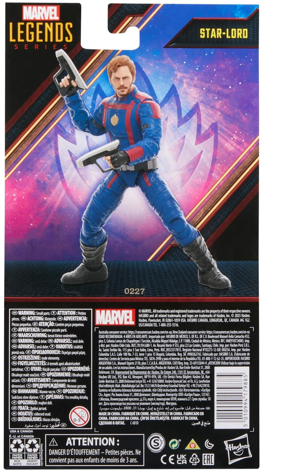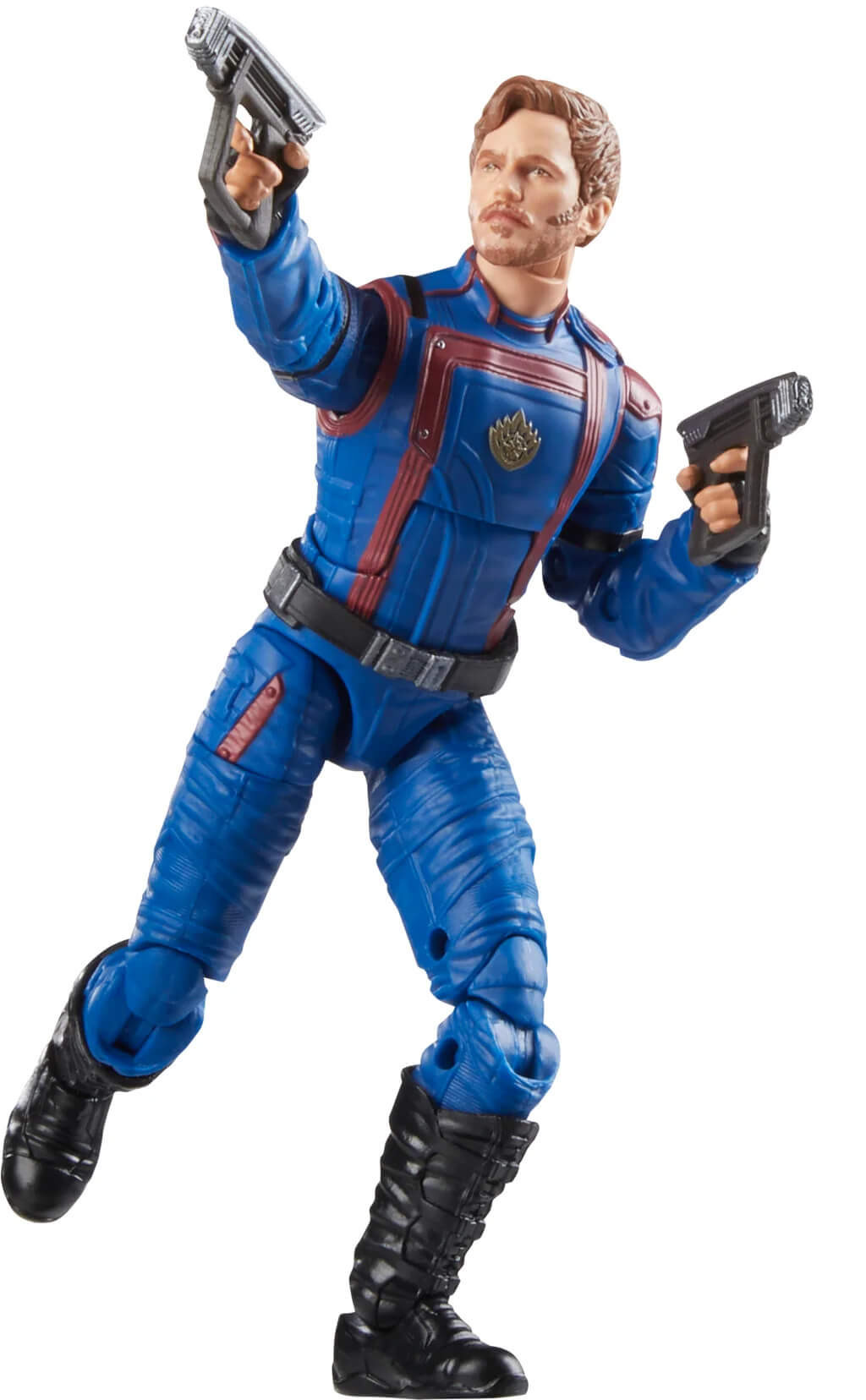 This collectible 6-inch-scale Marvel Legends figure is detailed to look like the Star-Lord character from Marvel Studios’ Guardians of the Galaxy Vol. 3, featuring premium detail, multiple points of articulation, and 2 movie-inspired blaster accessories.