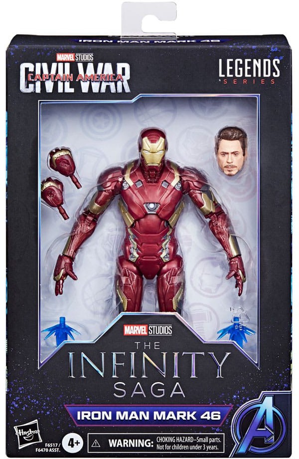 Bring the excitement and wonder of the Marvel Universe to your collection with Hasbro Marvel Legends Iron Man Mark 46 and other Infinity Saga action figures! This collectible 6-inch-scale MCU action figure is detailed to look like Iron Man Mark 46 from Marvel Studios' Captain America: Civil War. Iron Man Mark 46 Marvel Legends figure is fully articulated with premium design and poseable head, arms, and legs. This Marvel action figure comes with 5 accessories. Hasbro Marvel action figures' 6 inch scale make them great for posing and displaying in fans' collections. (Additional products each sold separately. Subject to availability.)