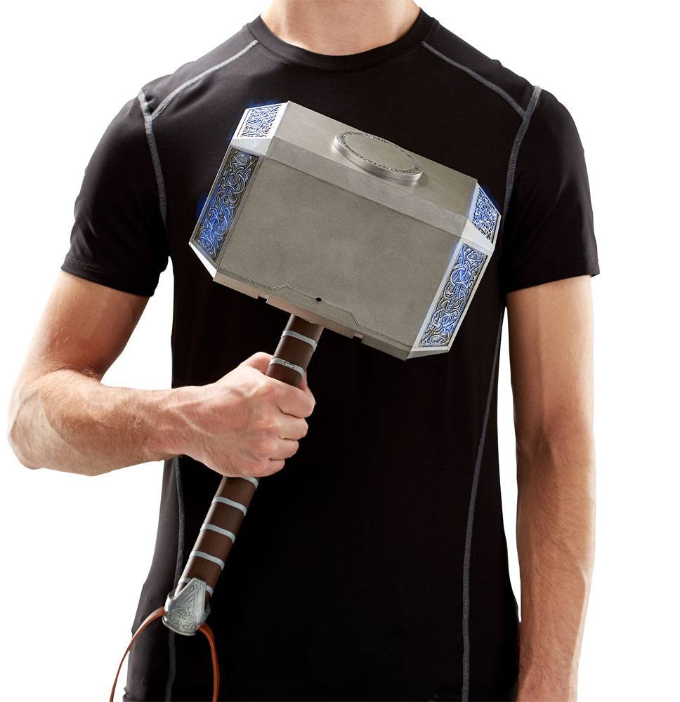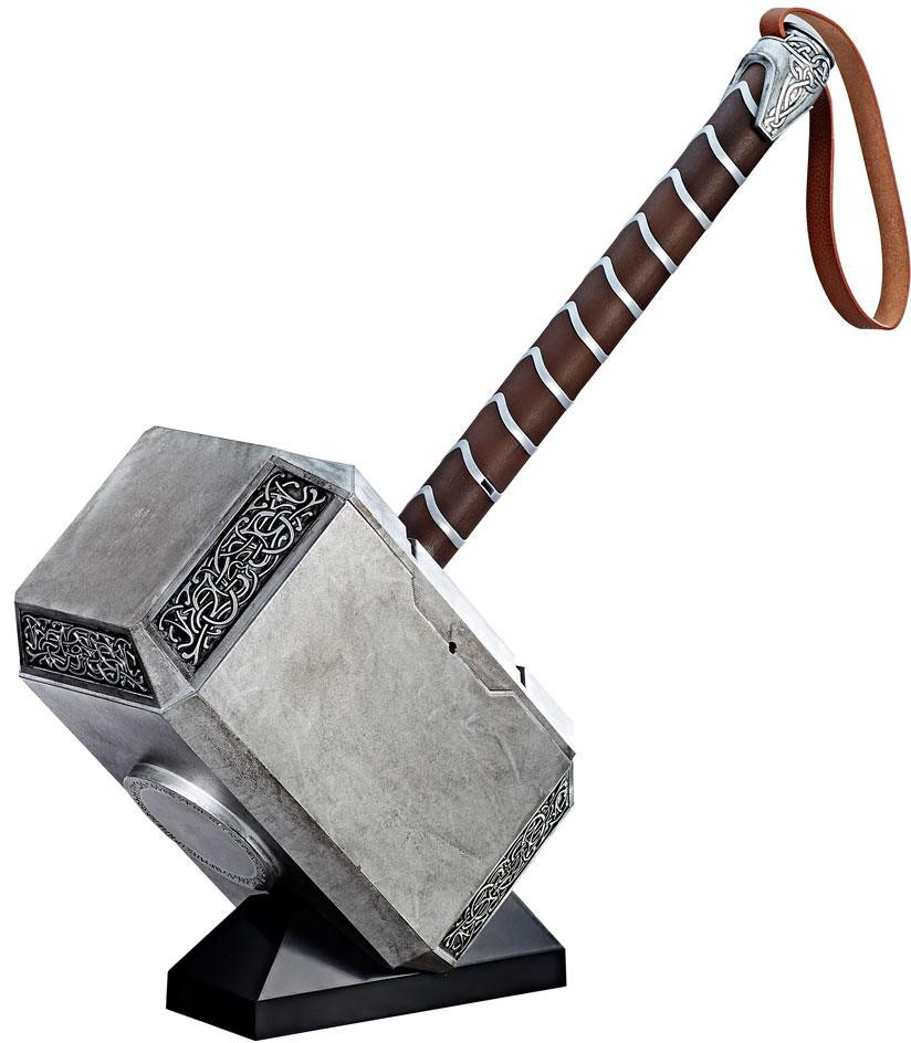 Summon the powers of Mjolnir! With this premium Mjolnir Electronic Hammer from the Marvel Legends Series, wield Thor's hammer and imagine channeling the powers of the Asgardian God of Thunder! Inspired by classic Thor and built at full-scale, this Electronic Hammer features premium design and styling, as well as intricate detailing on the hammer's pommel, straps, and hammerhead.