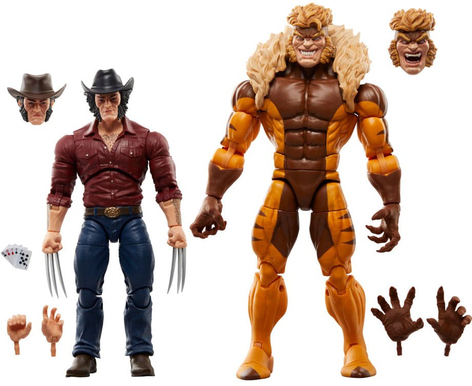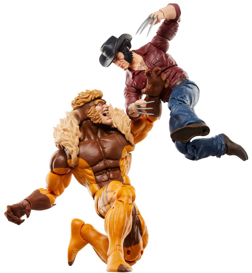 Bring the excitement and wonder of the Marvel Universe to your collection with Hasbro Marvel Legends Sabretooth and Marvel's Logan figures! In celebration of Wolverine's 50th anniversary, these collectible figures are detailed to look like the characters from Marvel's Wolverine comics. 6-inch scale Marvel figures are fully articulated with poseable head, arms, and legs. Marvel action figure set comes with 6 accessories, including alternate head and hands for each figure. Hasbro Marvel action figures' 6 inch scale make them great for posing and displaying in fans' collections -- Marvel's Logan stands at 6 inches (15 cm) tall, while Sabretooth stands at over 7 inches (17.5 cm) tall. Reimagine Wolverine comics-inspired scenes on your shelf with Marvel Legends action figures.