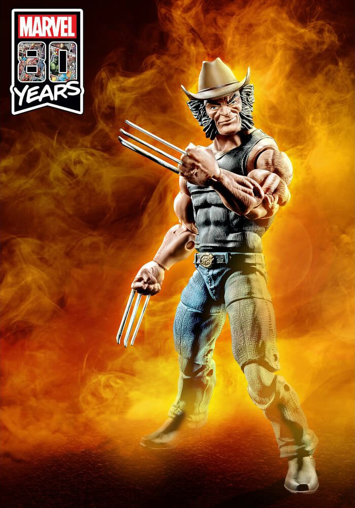This articulated plastic X-Men Marvel Legends 6-Inch Cowboy Logan Action Figure includes awesome hat and Adamantium claws.