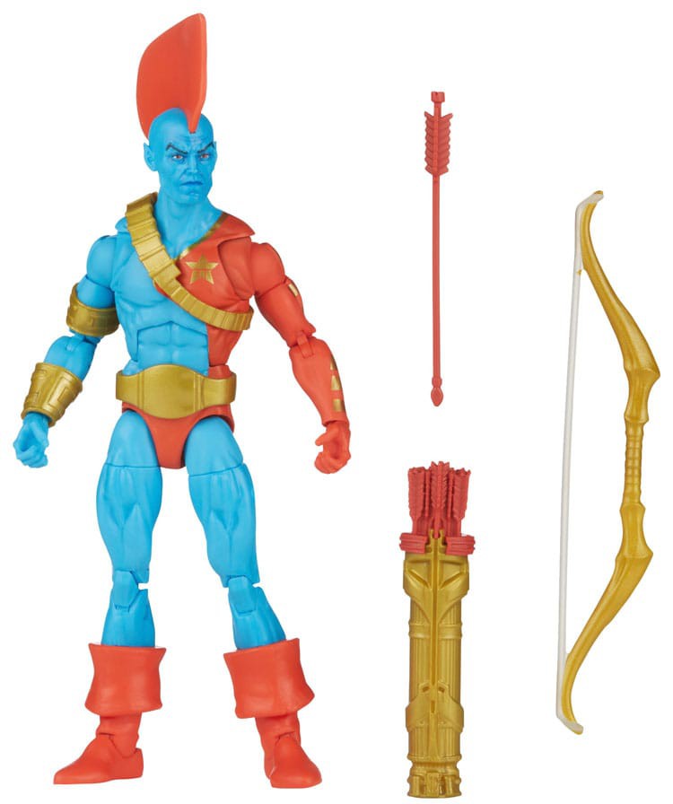 This collectible 6-inch-scale Marvel Legends Guardians of the Galaxy action figure is detailed to look like the classic Yondu character from Marvel comics starring the Guardians of the Galaxy, featuring premium detail and multiple points of articulation. It comes with 3 accessories, including bow, quiver, and yaka arrow.