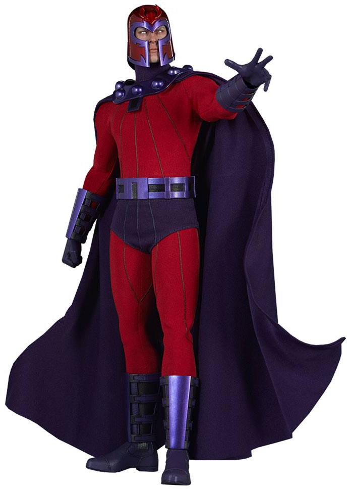 Inspired by the character's comic book appearance, the Magneto Sixth Scale Figure features a detailed fabric costume, which includes a red body suit with raised textures, purple shorts, and a wired, posable purple cape. The costume also includes sculpted elements such as his metallic purple belt and mantle, and sculpted boots and wrist guards. Magneto also features seven different hands, including a pair of fists, a pair of flight hands, a pair of crushing hands, and one left hand with a non-removable levitating effect.