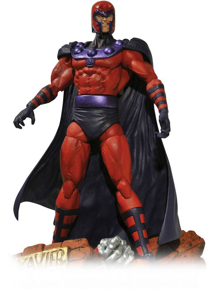 The ranks of the best-selling Marvel Select line expand to include one of the most deadly mutants ever, a man that has single handily defeated all of the Marvel heroes and has ambitions to wipe out the human race - the "Master of Magnetism", Magneto! Sculpted by Gabriel Marquez, this 18 cm depiction of the infamous enemy of mankind depicts the powerful mutant in all his glory, captured post-battle via a special display featuring the body of a fallen enemy buried under rubble. Featuring Marvel Select's standard 16 points of articulation, Magneto, and the sans-helmet chase variant figure, are the textbook definition of magnetism incarnate!
