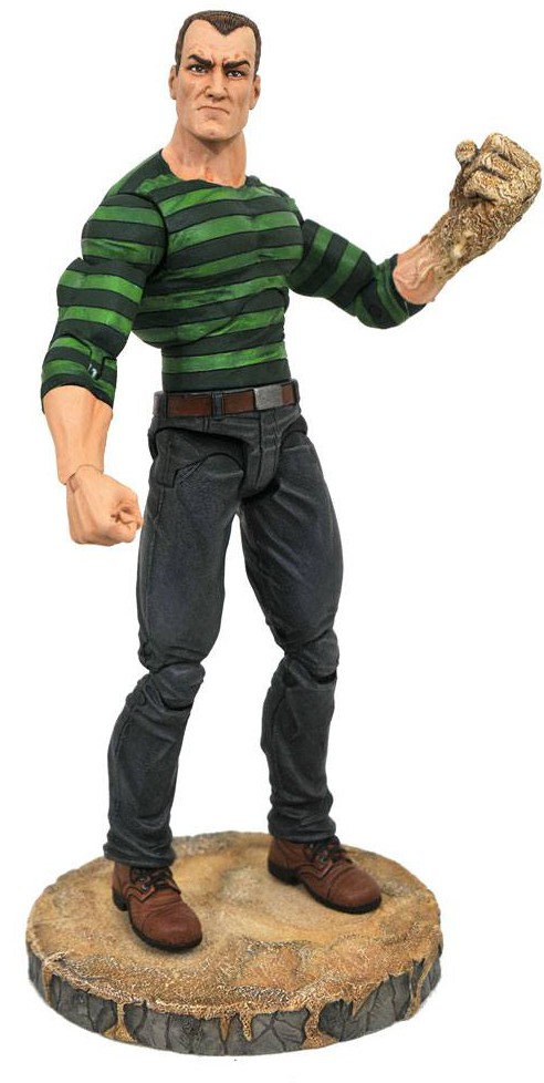 Time for lights-out! The Sandman is coming, and he's got the sand to take on Spider-Man -- and all of the heroes in your Marvel Select collection! Wearing his classic striped shirt, Flint Marko features legs that can change to a tower of sand, and interchangeable sand fist, claw, and spiked mace pieces! Measuring approximately 18 cm tall, he comes packaged in display-ready Select packaging. Designed by Eamon O'Donoghue, and hand-sculpted by Jean St. Jean!