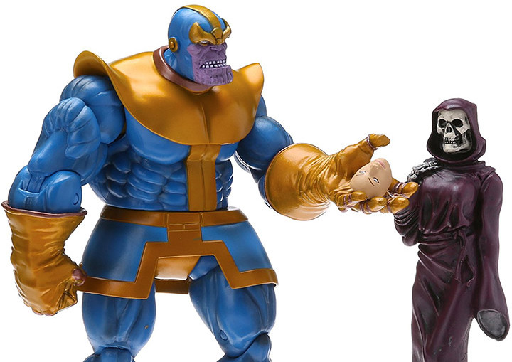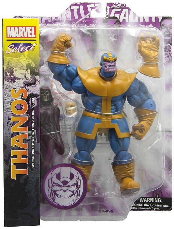 A Diamond Select Release! With the cosmically-charged Infinity Gauntlet in his grasp, Thanos nearly wiped out every living being in the universe... and would have succeeded if not for the intervention of some of the Marvel Universe’s greatest heroes! With 14 points of articulation, the Thanos figure is a detailed representation of the villainous legend, complete with a removable “Infinity Gauntlet” and a scale unarticulated Death figure. Blister card packaging.