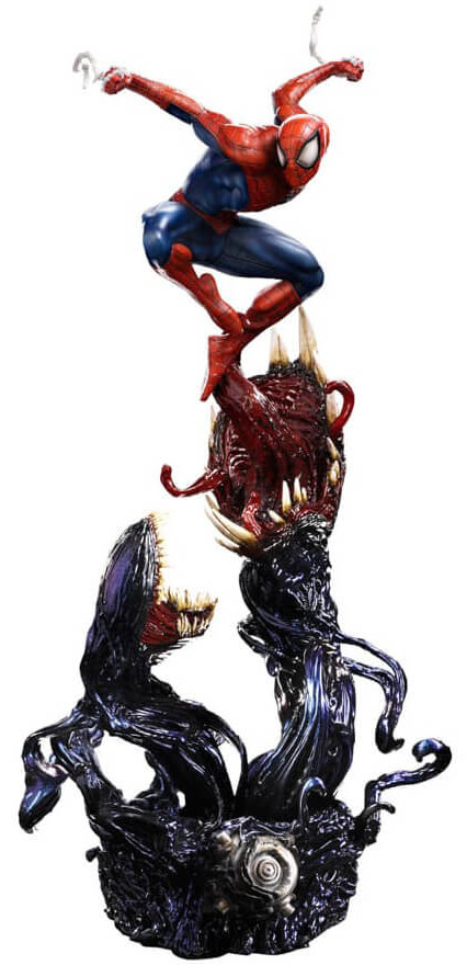 Iron Studios also bring a regular version of the statue "Spider-Man - Spider-Man vs Villains - BDS Art Scale 1/10", with a simpler set base in which a monstrous and viscous alien tongue breaks the structure of a metallic base floor underneath his feet to try to capture him.