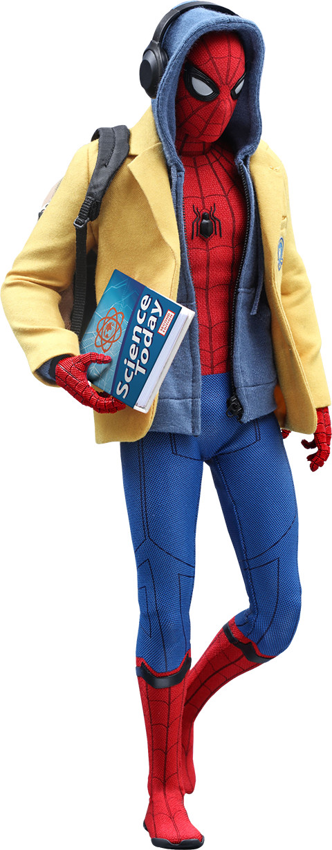 Based on the new battling suit given to Peter Parker by Tony Stark, the figure features a newly developed masked head sculpt with four pairs of interchangeable eye pieces to create numerous combinations of Spider-Man's expressions. The figure also features a newly crafted interchangeable head sculpt featuring likeness of Tom Holland, a newly developed specialized body, an expertly tailored and greatly detailed costume, a pair of magnetically attachable web-wings, a variety of spider-web shooting effect parts, and a Spider-Man themed dynamic figure stand.