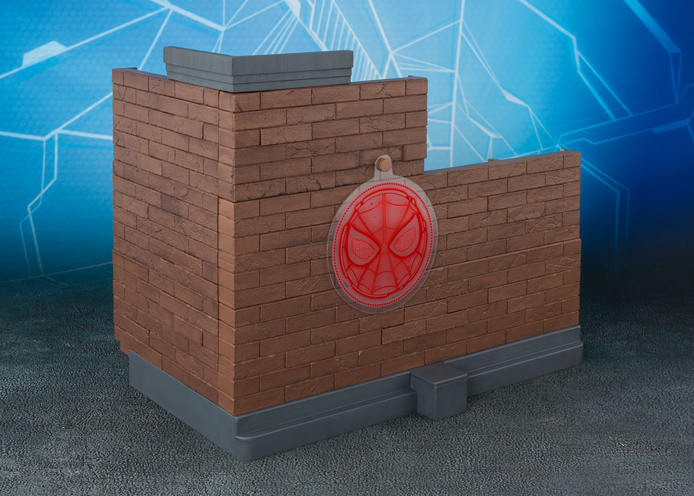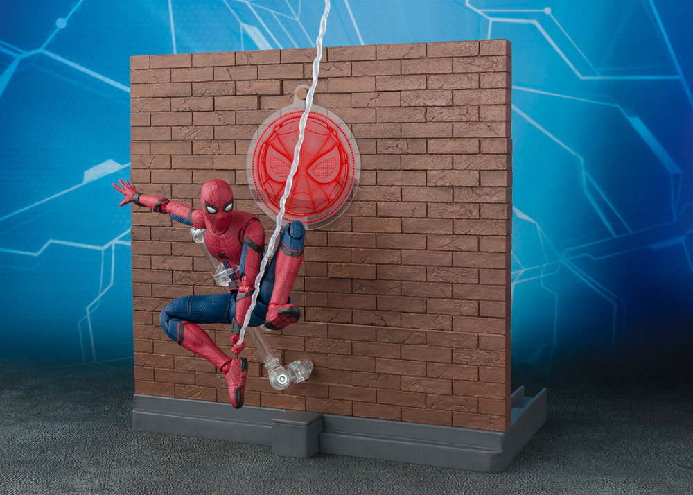 Set Contents: (Spider-Man) Action Figure, Interchangeable Hand Parts (left x6, right x6), Interchangeable Eye Parts Set, Effect Parts Set, Backpack, Cell Phone, Tamashii STAGE Joint, Wall Parts (Large) x2, Wall Parts (Small) 2 Types x2, Base Parts, Base Hole Plug Parts, Rook Parts, Wall Support Parts A, Wall Support Parts B, Arm, Arm Clip, Clip Base, PET Effect.