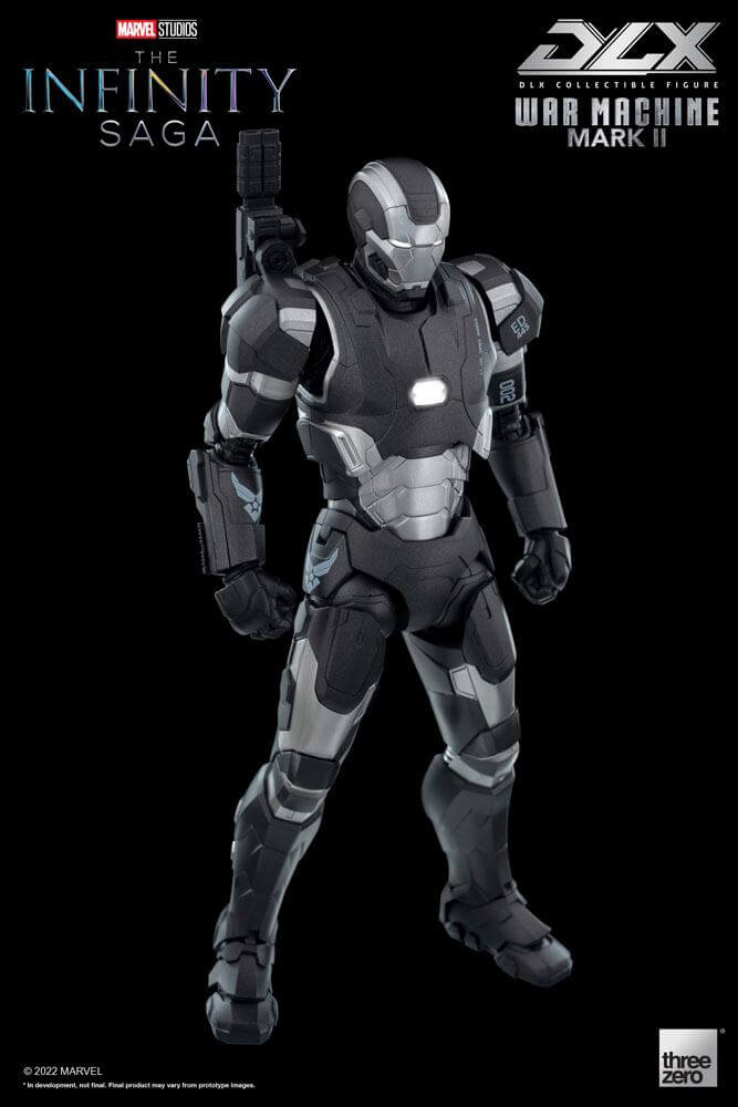 threezero and Marvel Studios are excited to present the DLX War Machine Mark 2 as the next figure in the Marvel DLX series. It adopts the classic color of black and silver with a multi-layer metallic coating process, accurately replicating the design from the movies.