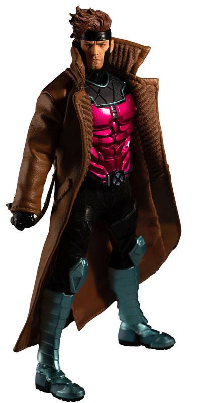 The One:12 Collective Gambit is outfitted in a black mission suit with an X-Men issued armored vest and removable leather-look overcoat. Complete with 2 head portraits, the master of kinetic energy comes complete with a bo staff and a variety of throwing cards and throwing card FX.