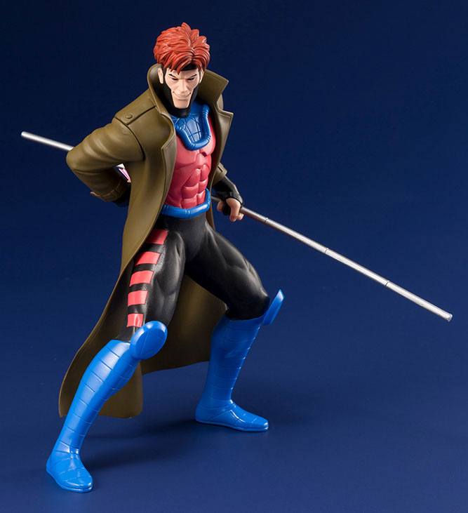 The X-Men series has garnered a lot of attention recently due to success Fox's television series The Gifted and the upcoming New Mutants film. Now, Kotobukiya presents a line of highly collectible ARTFX+ figures inspired by the golden age of the X-Men series! The highly collectible 1/10 scale figures of the X-MEN '92 series are rendered in the bold, dynamic style of the popular X-Men animated series from the 90s, their simplistic sculpting and vivid colors making them look as if they've jumped straight out of an animation cel. The sixth entry in the X-Men '92 line is a long-awaited, powerful duo: the antihero created by Chris Claremont and Jim Lee, Gambit, and the popular superheroine who has appeared in countless X-Men adaptations from the animation to video games, Rogue! The pair is recreated in bold animation-style detail, from the charged card Gambit holds behind his back to Rogue's dynamic flying pose. At 1/10 scale, this affordable two pack is perfect for displaying alongside other ARTFX+ statues and the popular characters of the X-Men '92 series. Collect them all!
