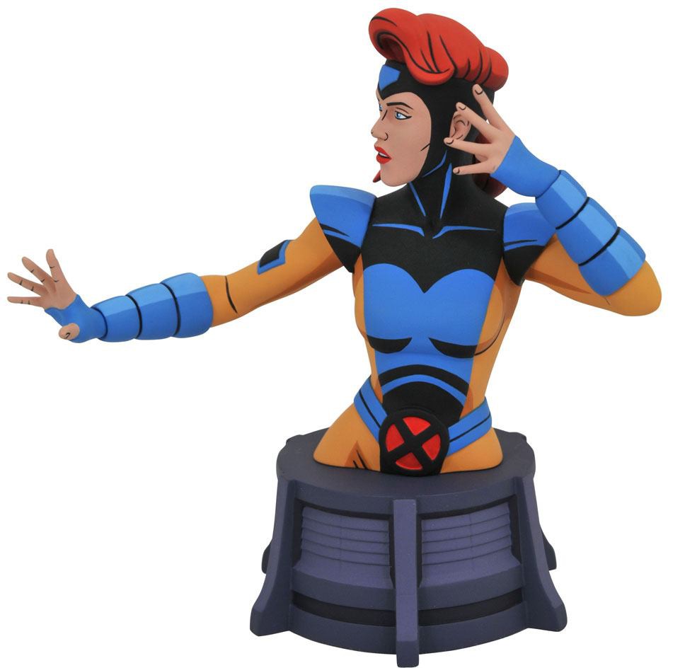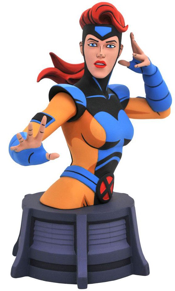 A Diamond Select Toys release! The groundbreaking animated-style line of X-Men busts continues with the X-Men's resident redhead, Jean Grey! Looking like she just stepped off the screen from the hit cartoon, Jean focuses her telepathic abilities in this 6-inch resin bust, featuring detailed sculpting and animation-inspired paint details. Limited to only 3,000 pieces, it comes packaged in a full-color window box with a certificate of authenticity.