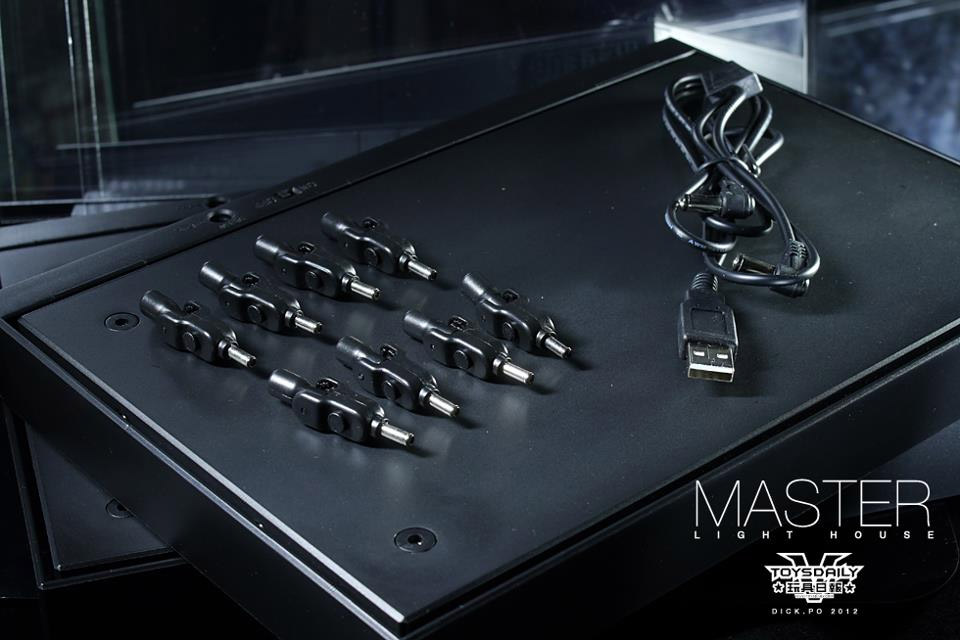 The Master Light House is equipped with eight rotating mini spotlights (one in each corner of base and lid) and allows you to display up to two regular 1/6 action figures (size +/- 30 cm). It´s very easy to assemble and the removable front panel lets you replace figures in no time. The back panel is mirrored on the inside.