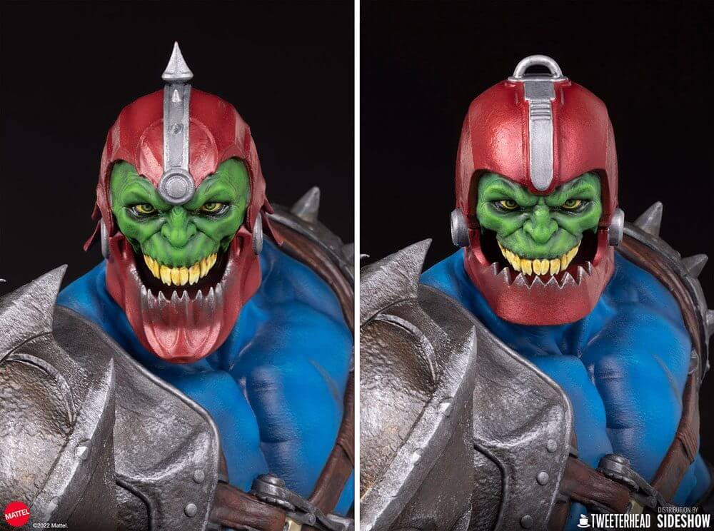 The all-inclusive Trap Jaw Maquette comes with two swap-out portraits, one featuring his modern spiked helm and one with a more classic rounded appearance, for collectors to choose from. He additionally features a swap-out modernized blaster weapon arm and a reinvented hook arm, making him deadlier than ever before.