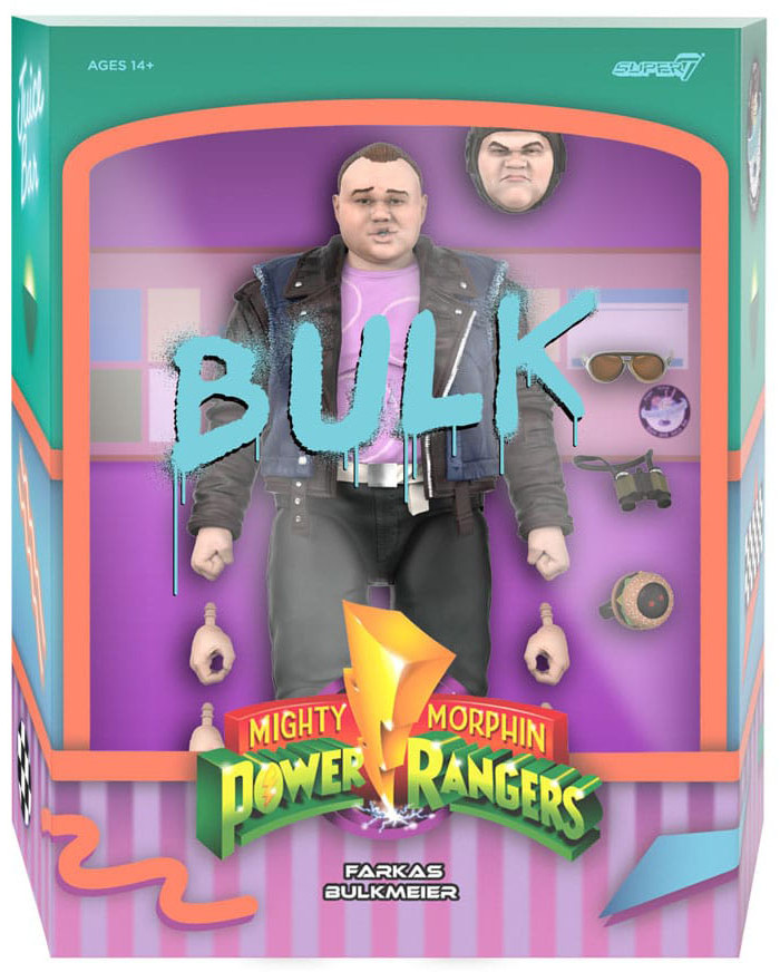 synes i sidste ende ikke at gøre meget andet end at gøre sig selv til grin! Denne højt artikulerede Mighty Morphin Power Rangers ULTIMATES! Farkas "Bulk" Bulkmeier har indviklede skulpturer, førsteklasses farvedetaljer og udskiftelige hoveder og hænder samt en række tilbehør, bl.a. kikkert og solbriller.