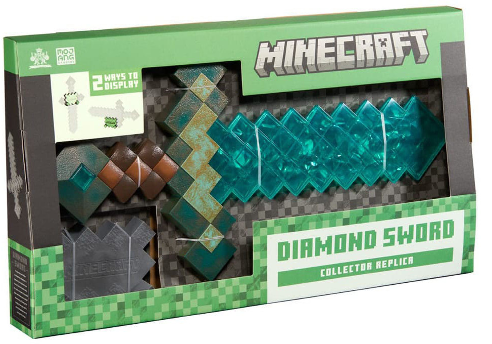 Et diamantsværd er et uundværligt værktøj for den dygtige eventyrer, som beskytter dig mod alle slags fjendtlige monstre. Denne samlerkopi genskaber den slidstærke klinge med en antik finish kombineret med en støbejernsstruktur og kunstlæderlook. Sværdet er 50 cm langt og 25 cm bredt ved håndtaget og leveres med et stativ præget med Minecraft-logoet, der fungerer som både vægbeslag og skrivebordsstativ (inkluderer to skruer og gipsankre).