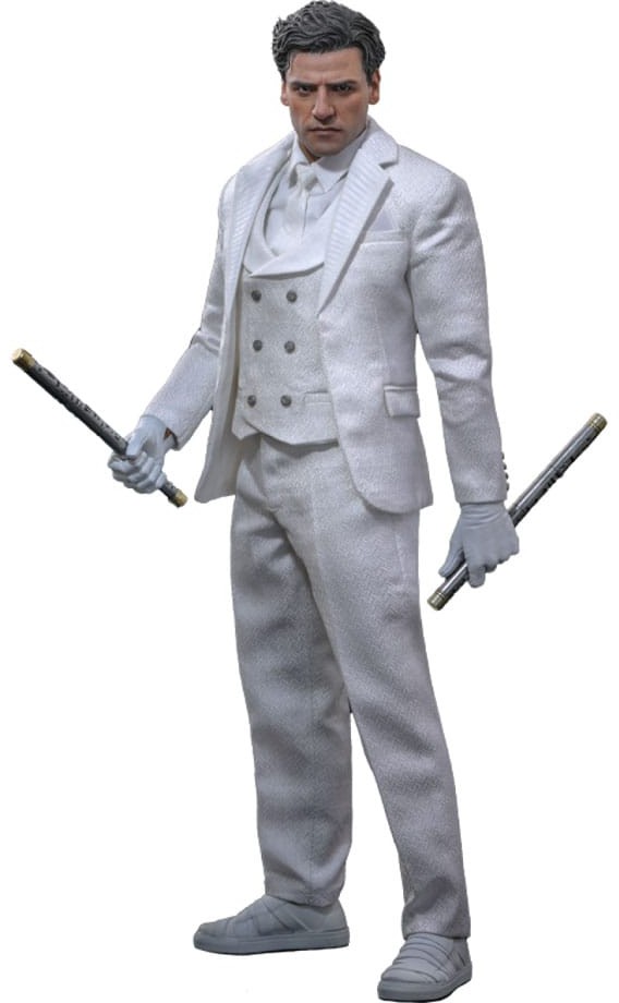 Sophisticatedly crafted based on Mr. Knight's appearance in Marvel Studios' Moon Knight, the highly detailed figure features a newly sculpted Marc Spector/Steven Grant head sculpt with separate rolling eyeballs, along with a newly developed masked head with LED light-up function design on eyes. Mr. Knight's all-white costume is a finely tailored three-piece suit, highlighted by a herringbone pattern on the fabric and adorned with ancient symbol buttons on the suit jacket and waistcoat, as well as a pair of white boots with bandage-wrapped design to complete his outfit. The figure also comes with a Scarab, and a figure stand for display.