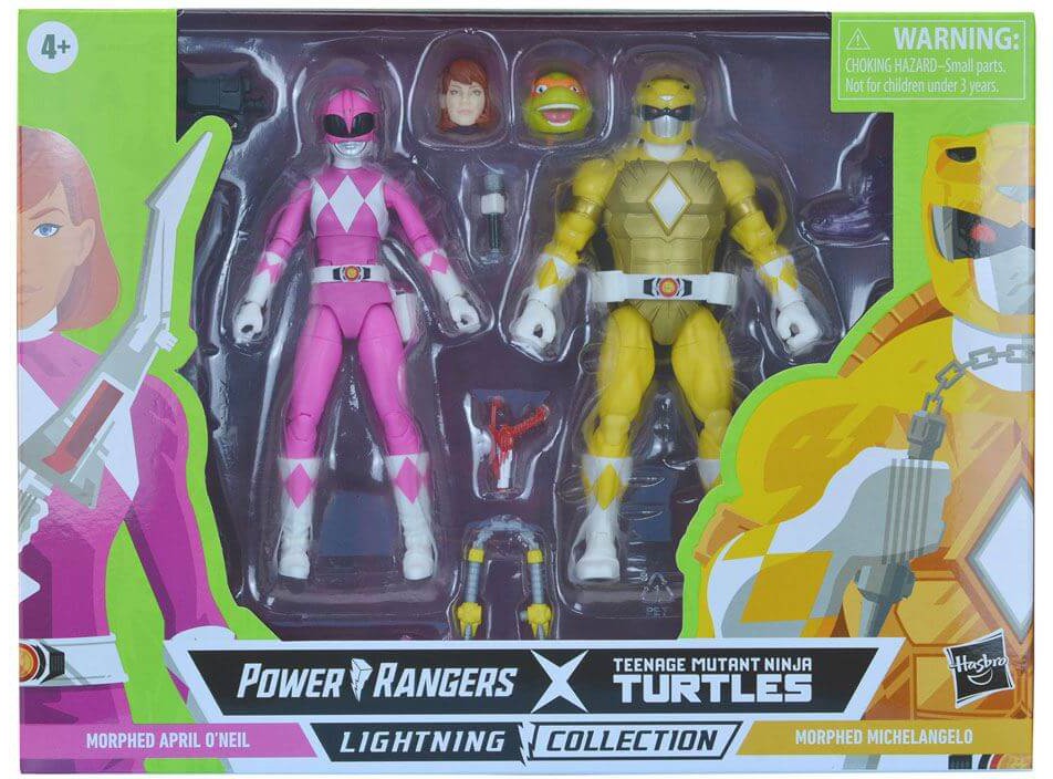 This 6-inch Lightning Collection MMPR x TMNT Collab 2-pack features action figures with premium paint and decorative details inspired by the Boom! Comics crossover miniseries, with over 20 points of articulation in each figure for high poseability. Plus, swappable heads to display the Teenage Mutant Ninja Turtle and April with Ranger helmet or without. Also includes multiple character-inspired weapon accessories, blast effect pieces, and extra pairs of hands for more ways to play or display.