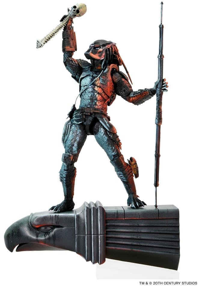 For the first time ever, this collectible includes a skyscraper gargoyle base where the Predator stealthily perches while surveying Los Angeles for his next worthy prey.