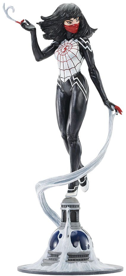 A Diamond Select Toys release! This Silk is smooth! Otherwise known as Cindy Moon, the spider-heroine Silk alights atop a rooftop cupola and spins a webline around it in this all-new 1/7 scale statue. Measuring approximately 14 inches tall, this beautiful sculpture is made of high-quality resin and features detailed sculpting and paint applications. It is limited to only 1,000 pieces and comes packaged in a full-color box with a numbered certificate of authenticity. Designed by Nelson X. Asencion and Clayburn Moore, sculpted by Clayburn Moore!